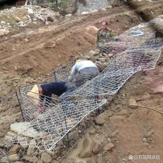 格賓是由特殊防腐處理(如鍍高爾凡)的低碳鋼絲經(jīng)機(jī)器編織而成形成雙絞合六邊形鋼絲網(wǎng),根據(jù)工程要求編成符合要求的網(wǎng)箱結(jié)構(gòu),格賓網(wǎng)箱的厚度遠(yuǎn)小于長(zhǎng)度和寬度的墊形工程構(gòu)件則稱(chēng)為雷諾護(hù)墊。